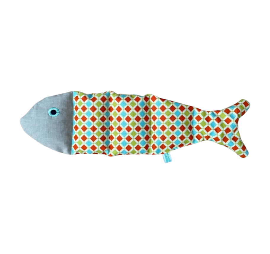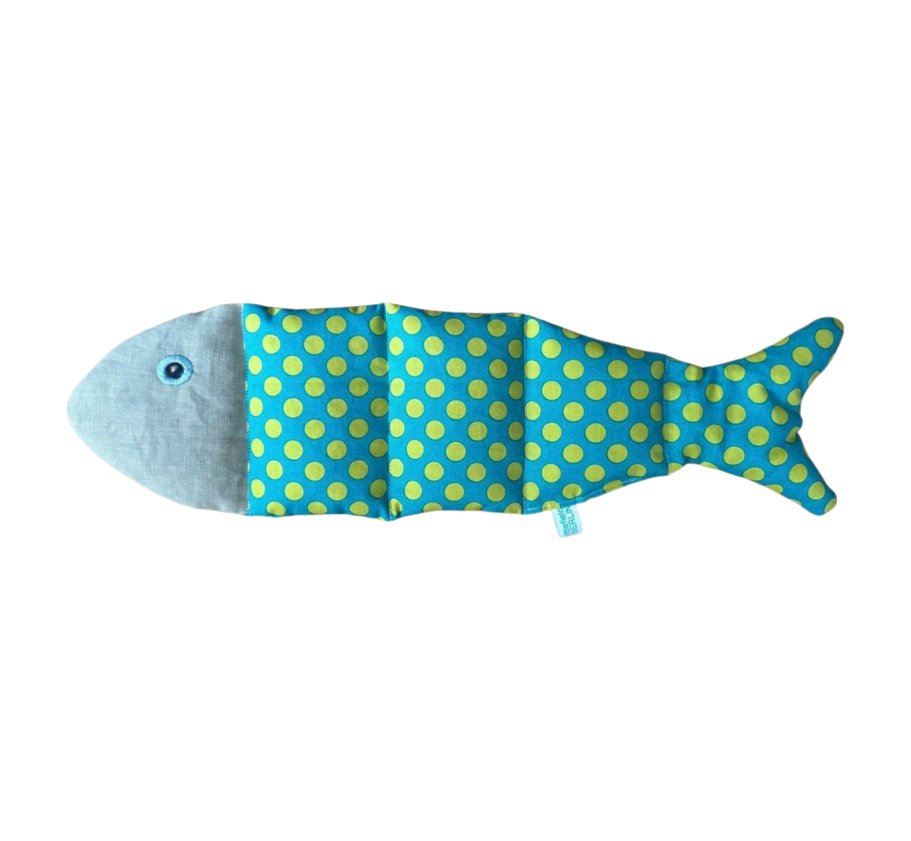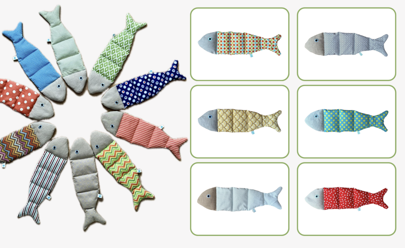 Der Dinkelfisch ist ein handgenähtes Wärmekissen aus Baumwolle und Leinen mit gestickten Augen. Er ist gefüllt mit Bio-Dinkelkörnern und duftendem Lavendel. Einfach in der Mikrowelle oder im Backofen erwärmen - schon schenkt er wohltuende Entspannung und einen beruhigenden Duft. Jeder Fisch ist ein Unikat und wird liebevoll in einem Präsentkarton verpackt angeboten. Ein schönes Geschenk für dich selbst oder liebe Menschen, die Wärme brauchen.